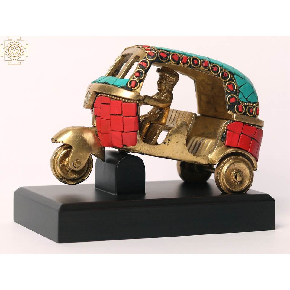 Rickshaw automático de latón pequeño hecho a mano de 5 pulgadas para decoración del hogar y propósito de regalo hecho en La India