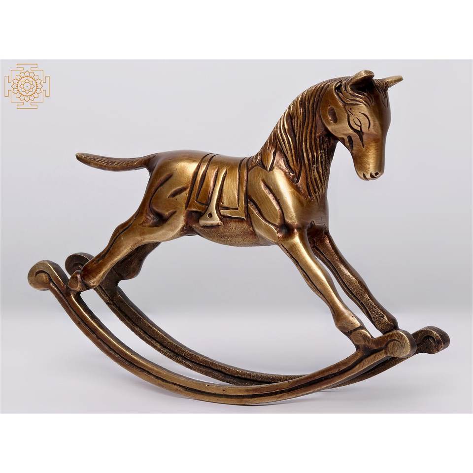 Estatua de caballo balancín de latón de 6 pulgadas hecha a mano, figurita de mesa, escultura decorativa para el hogar
