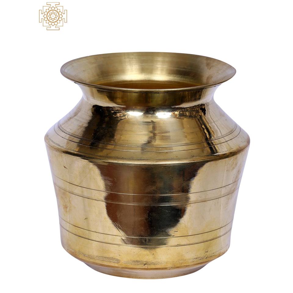 Kalash Pequeño de 6 Pulgadas Hecho a Mano en Latón, Artículo de Decoración para el Hogar, Hecho en India, Marca Exotic India, Modelo MIT379, Kalash Artesanal