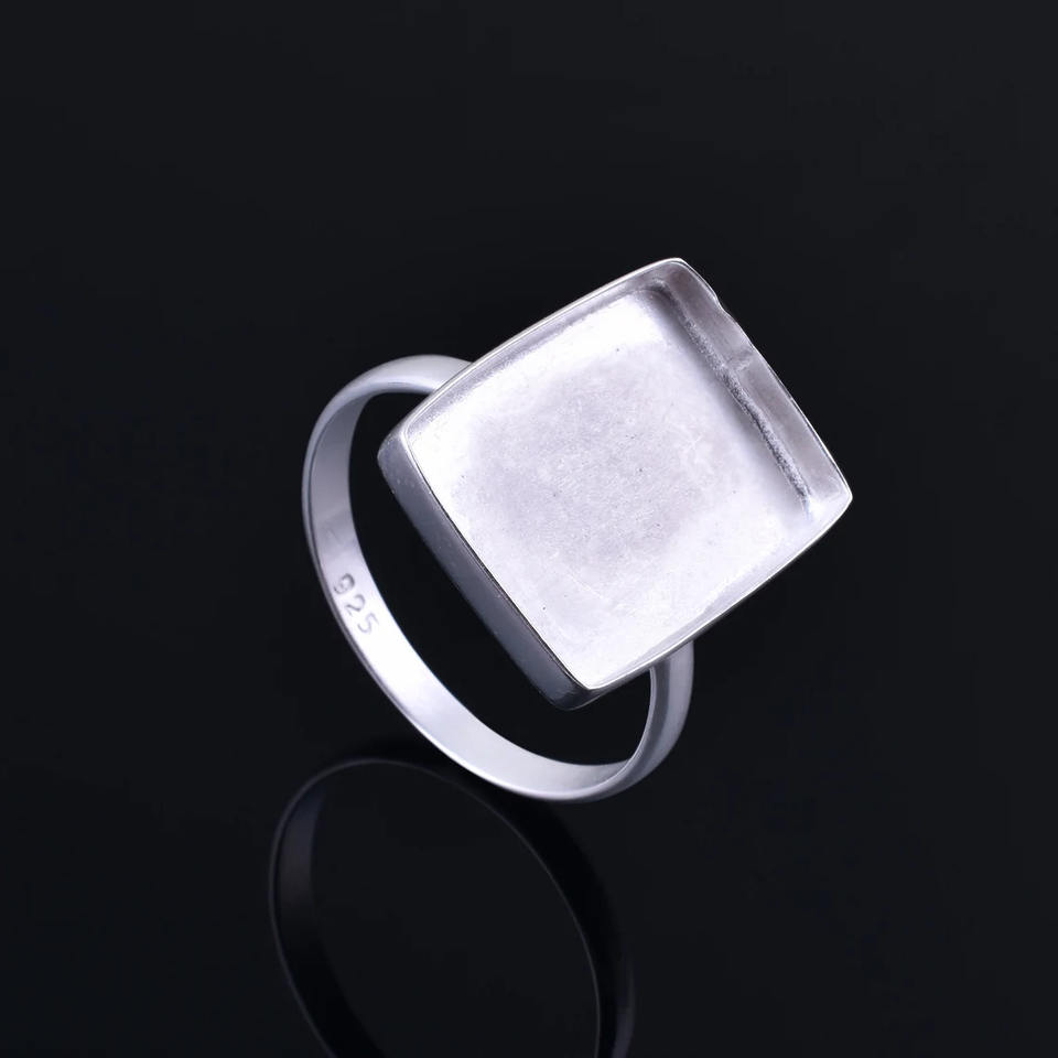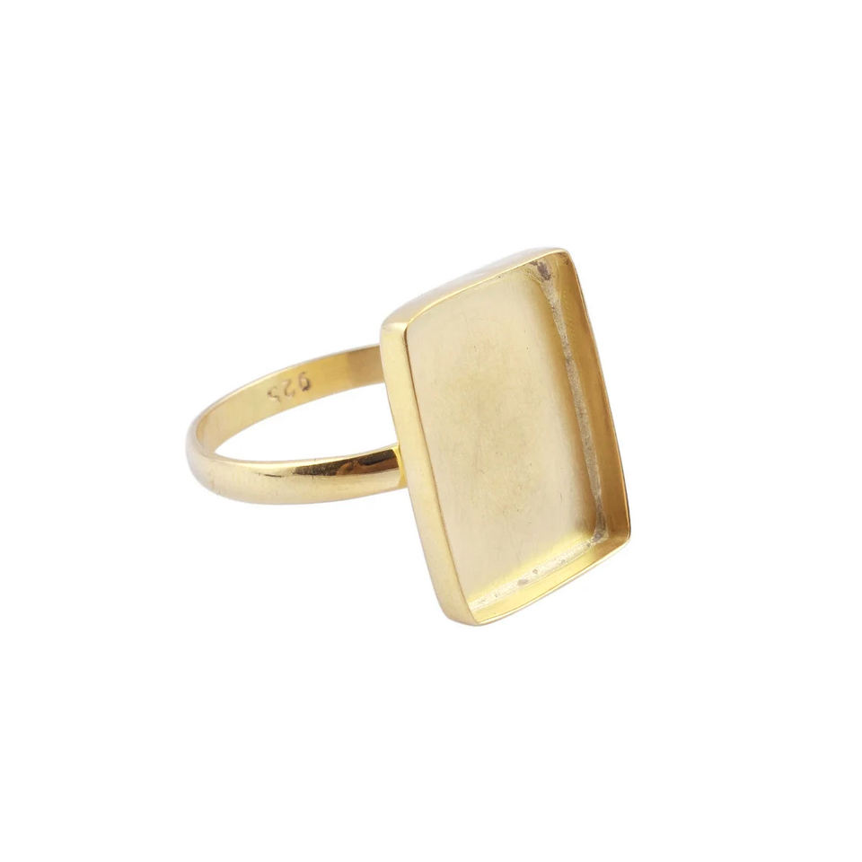 Anillos de copa de pinza rectangulares de 7-30 MM hechos a mano, anillo de copa de bisel chapado en oro de Plata de Ley 925 pura, joyería fina de fundición de Metal US-6