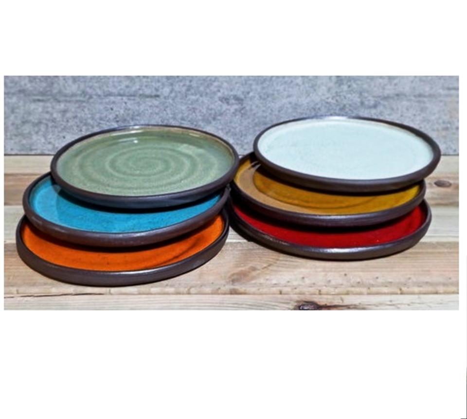 Platos de cerámica hechos a mano de 8 pulgadas, cuencos, utensilios de cocina y vajilla con acabado brillante chapados