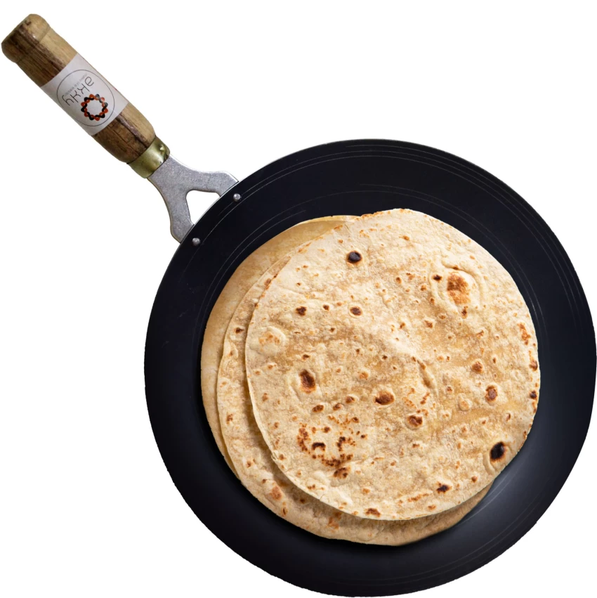 Tawa de hierro hecho a mano de 8 pulgadas con mango de madera, utensilio de cocina Roti Chapati, sartén de cocina, cocina de hotel para el hogar, la mejor calidad