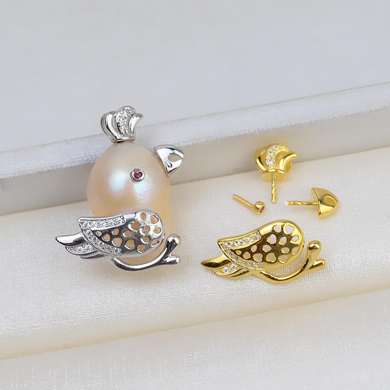 Colgante de Plata 925 Hecho a Mano con Perla Barroca y Base Vacía Exótica en Forma de Pájaro Pequeño para Mujer, Accesorio DIY