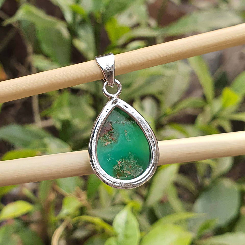 Nombre del producto:Natural verde australiano Chrysoprase 925 colgante de plata Para el collar