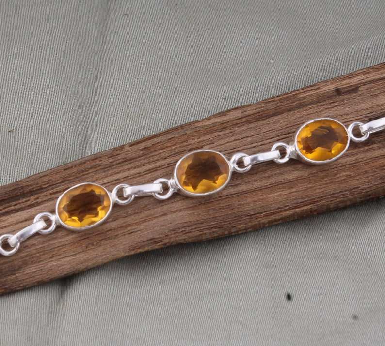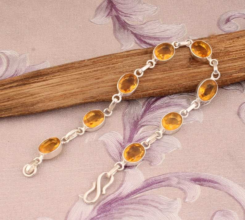 Cadena ajustable de Plata de Ley 925 hecha a mano, hermosa pulsera de citrino amarillo, eslabón fino para mujer, regalo de fiesta cristiana