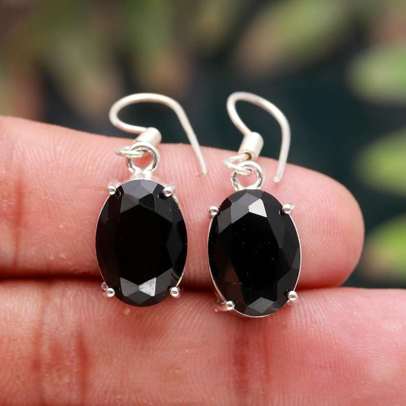 Palabra clave:Pendientes de botón de espinela negra con joyería de piedras preciosas brillantes