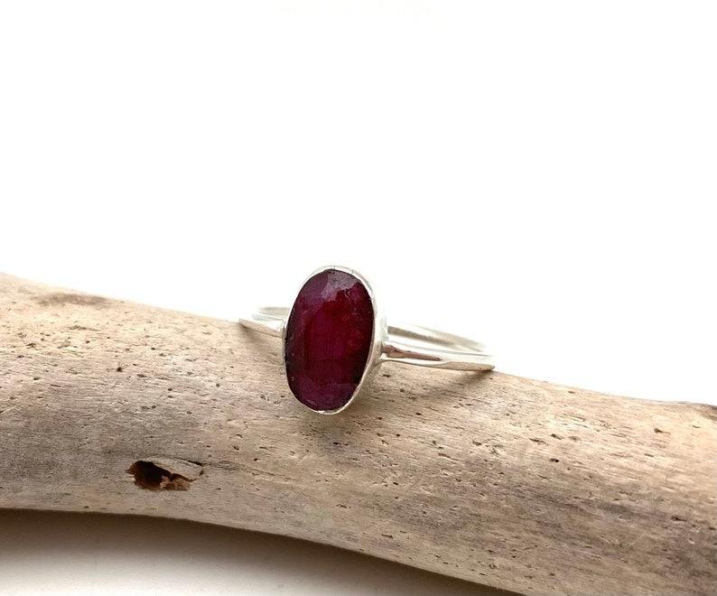 Anillo de estilo bohemio de Plata de Ley 925 hecho a mano con piedras preciosas de rubí chapado en rodio regalo de boda para mujeres y niñas para fiestas
