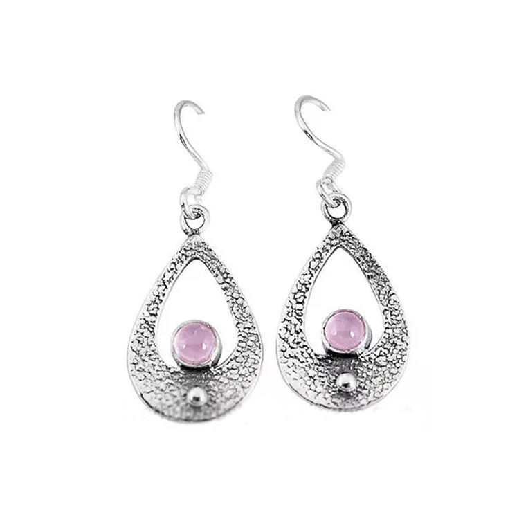 Nombre del Producto:Pendientes de Plata con Piedra de Cuarzo Rosa
