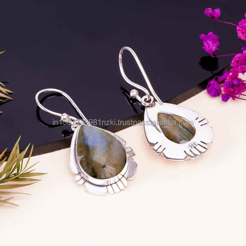 Pendiente de Plata de Ley 925 hecho a mano, pendiente colgante, pendiente de gota, pendiente de piedras preciosas, regalo único para ella
