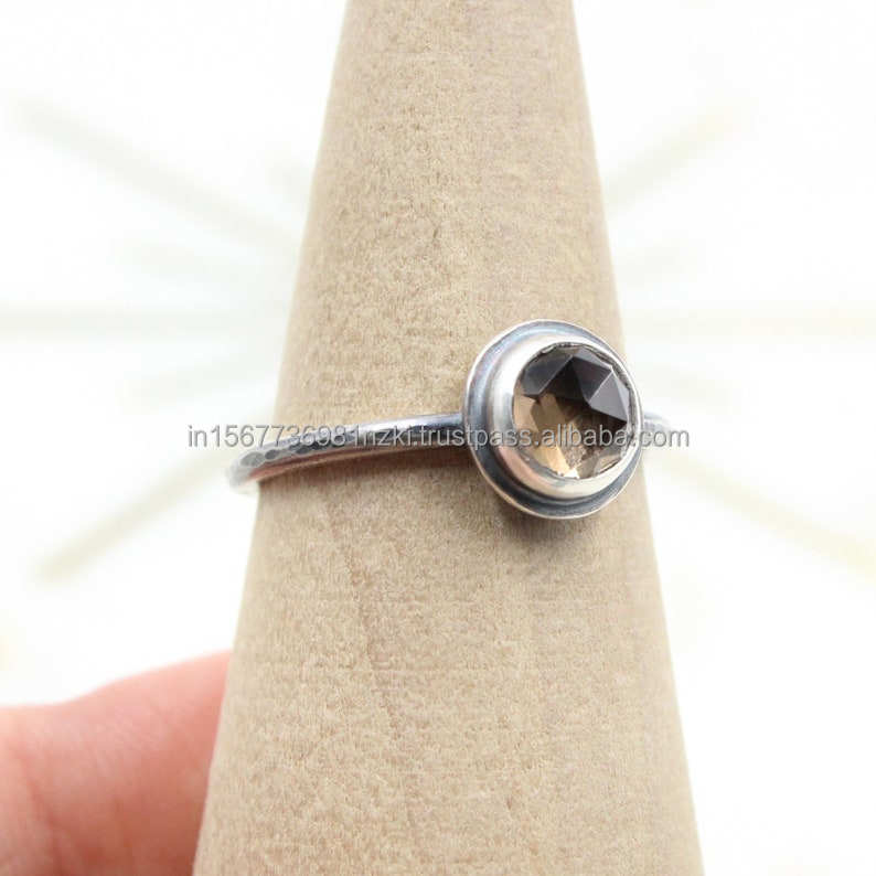 Nombre del producto:Anillo de plata esterlina 925 Cuarzo ahumado