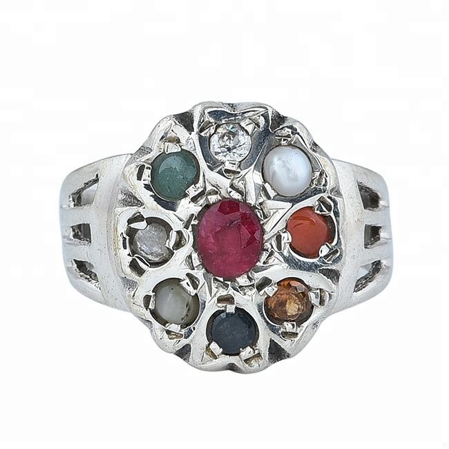 Anillo Navratna Multicolor Hecho a Mano en Plata de Ley 925