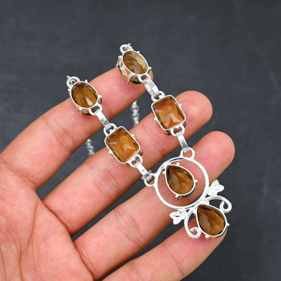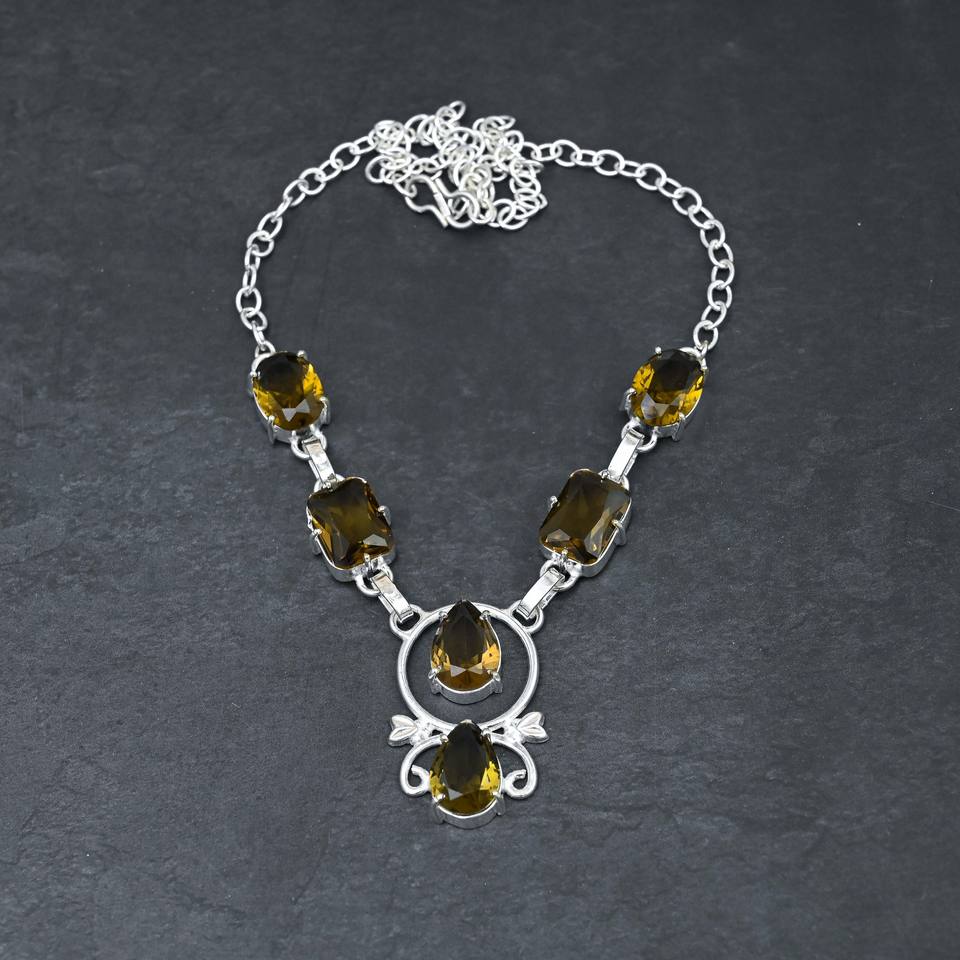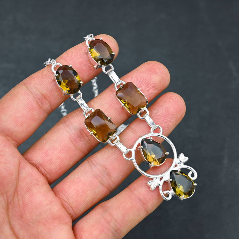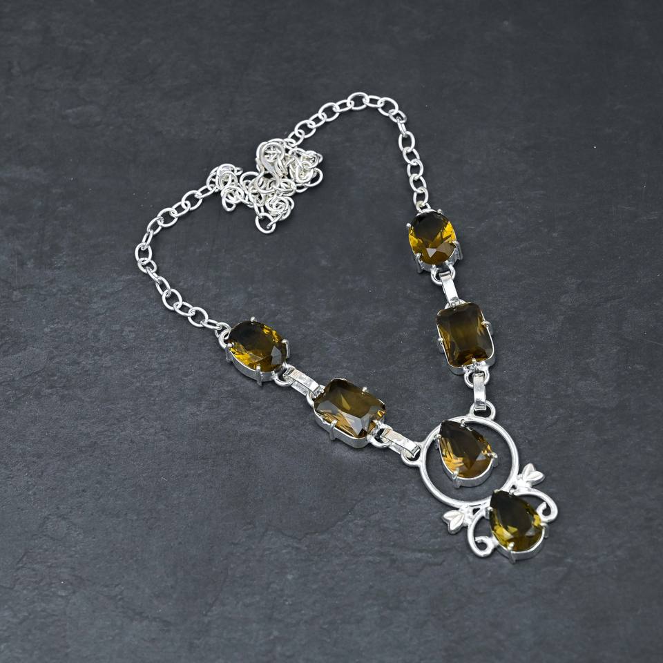 Collar de Plata de Ley 925 Hecho a Mano con Baño de Rodio, Cadena Ajustable y Cuarzo Ahumado Facetado, Eslabones Finos para Mujer, Ideal para Bodas