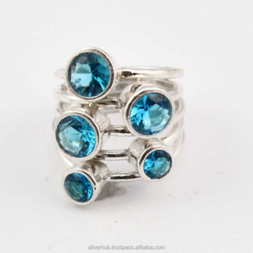 Anillo Hecho a Mano de Plata de Ley 925 con Hermosa Piedra de Topacio Azul, Joyería de Boda Real, Directo de la India, para Fiesta de Compromiso