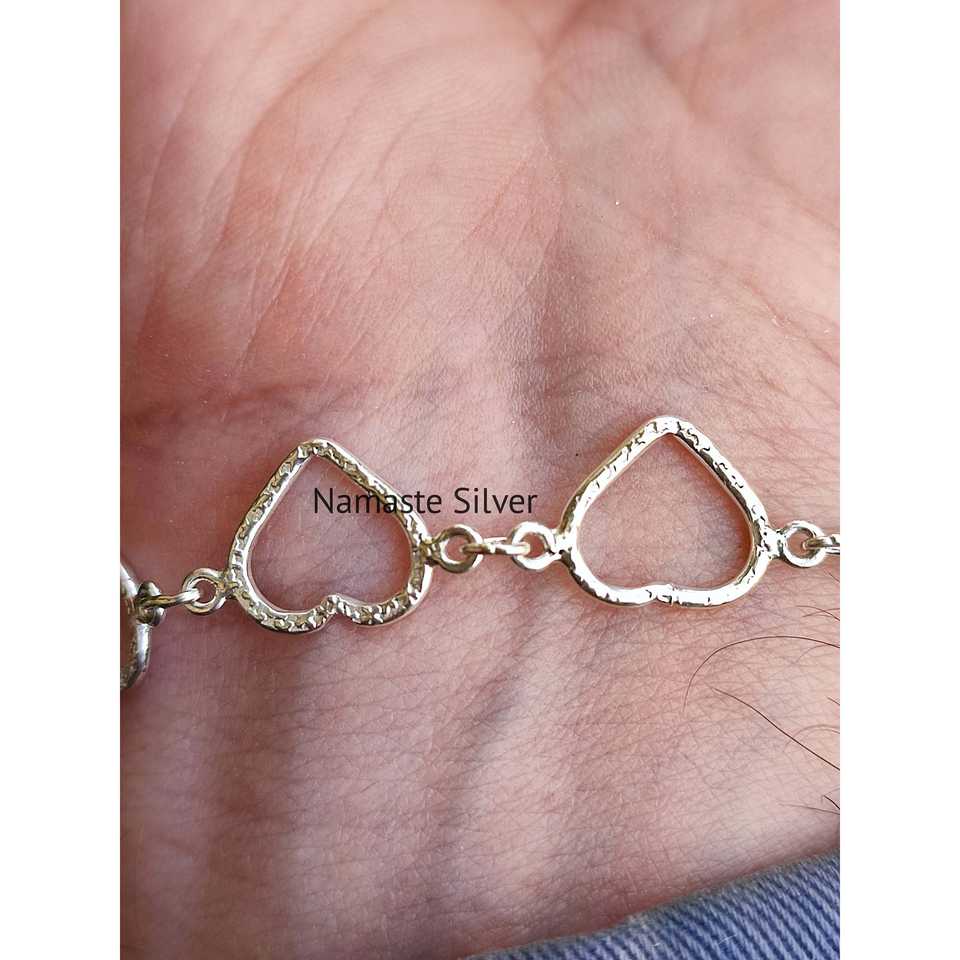 Pulsera de Cadena con Dije de Corazón de Oro 9K Hecha a Mano para Mujer, 7.5 Pulgadas de Largo, Ligera, con Cierre de Mosquetón, Diseño Único y Moderno