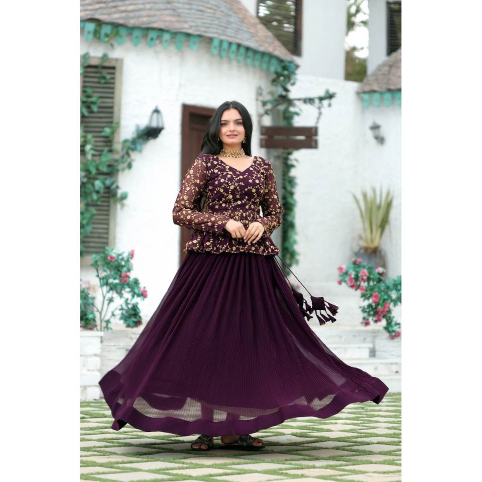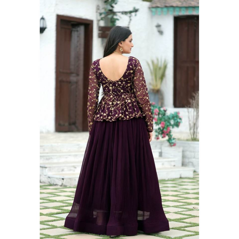 Top y Lehenga Hechos a Mano para Fiesta, con Bordado de Lentejuelas y Estampado Floral, Cintura Imperio