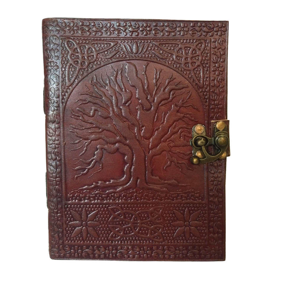 Diario de Cuero A3 Hecho a Mano con Grabado de Árbol de la Vida, Páginas Impresas Vintage, Encuadernación en Espiral, Sin Líneas, para Arte y Escritura