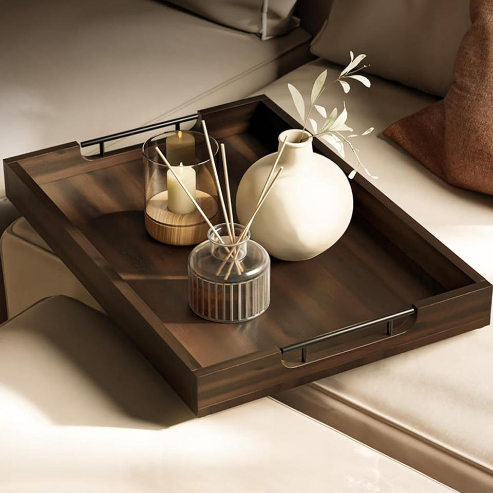 Bandeja otomana rectángulo de madera de acacia