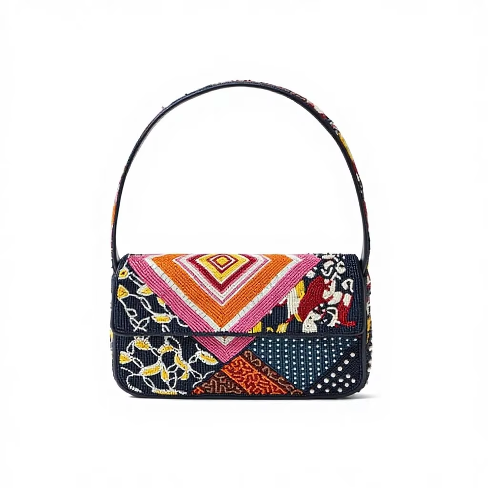 Bolso de Hombro Cuadrado de Media Luna con Cuentas Acrílicas Hechas a Mano, Colorido, Clásico y Moderno para Mujer, Estilo Bohemio Étnico de Diseñador