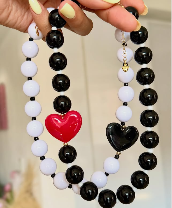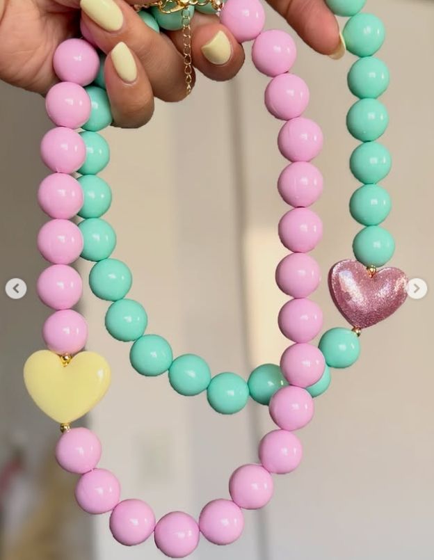 Collar de Cuentas Redondas de Acrílico Hechas a Mano, Collar con Corazón Esmaltado en Bloques de Color, Gargantilla Personalizada para Niñas