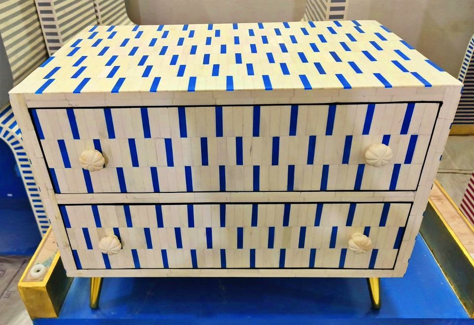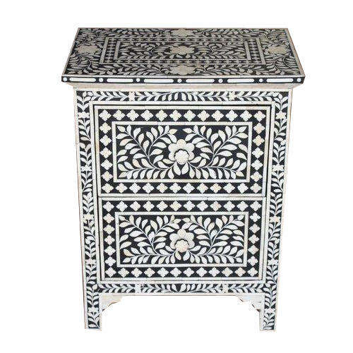 Mesa de Noche Rectangular Ajustable Hecha a Mano con Diseño Floral Moderno, Decoración para el Hogar con Incrustaciones de Hueso de Madera de Estilo Religioso por MOP Inlay
