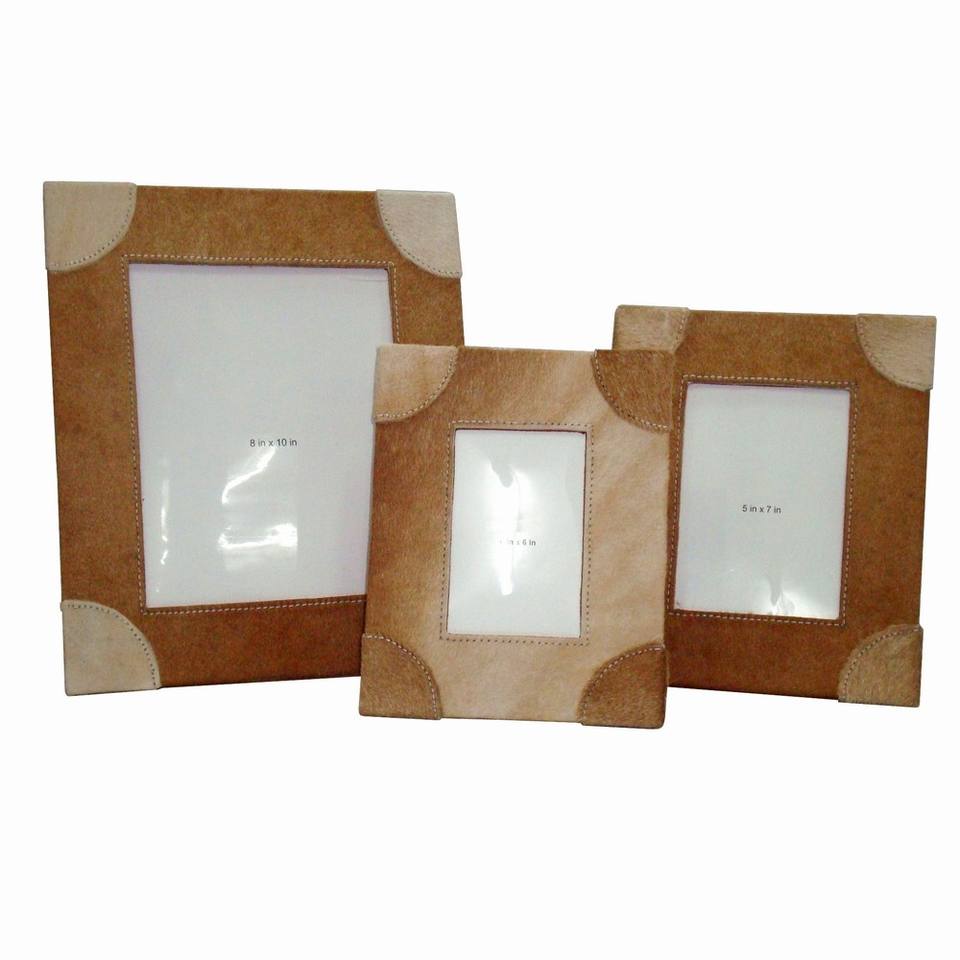 Marco de fotos de madera colorido estético hecho a mano con ribete de cuero logotipo personalizado increíble marco de fotos de galería Juego de 3