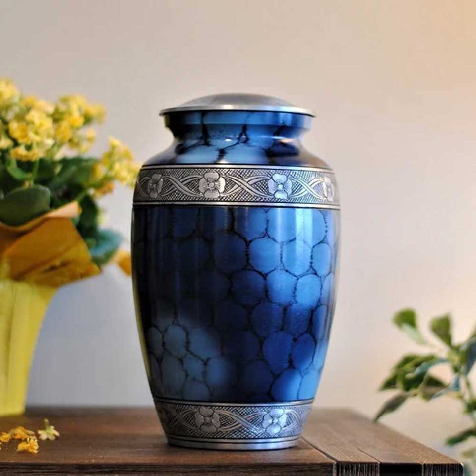 Urnas de cremación de aluminio hechas a mano para cenizas humanas Exportador de urnas funerarias indias de Venta caliente