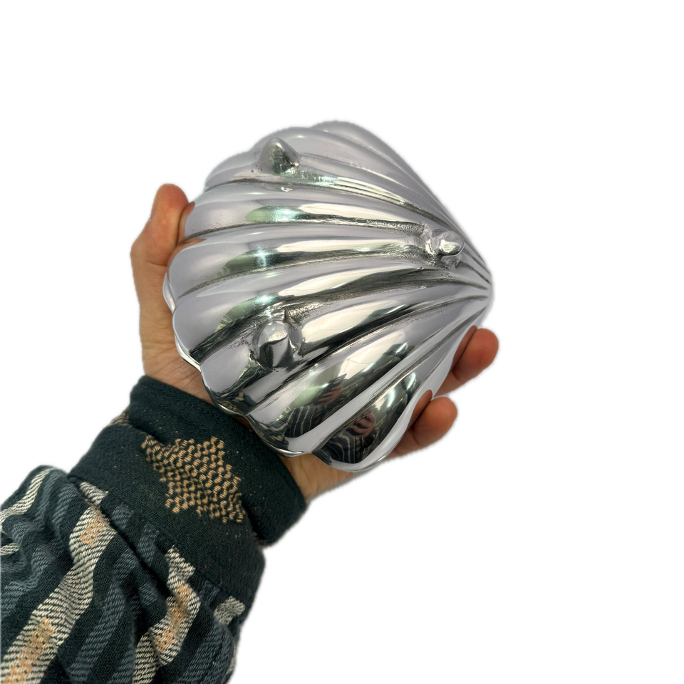 Tazón de Concha Marina de Aluminio Hecho a Mano con Tapa Plateada, Caja de Joyería Decorativa, Florero de Mesa, Artesanía Metálica para el Hogar