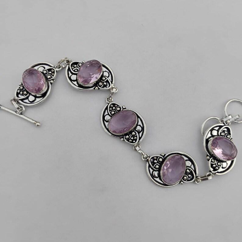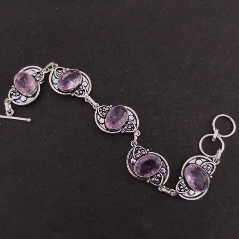 Pulsera de Amatista Brillante Hecha a Mano con Plata de Ley, Joyería de Piedras Preciosas para Mujer, Lujo, Certificación GIA, Elegante, Febrero