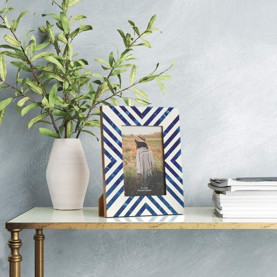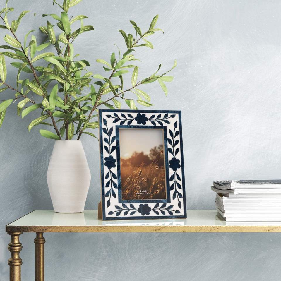 Marco de madera con diseño de incrustaciones de hueso antiguo, Marco azul cielo moderno hecho a mano para sala de estar, propósito decorativo por HF CRAFTS