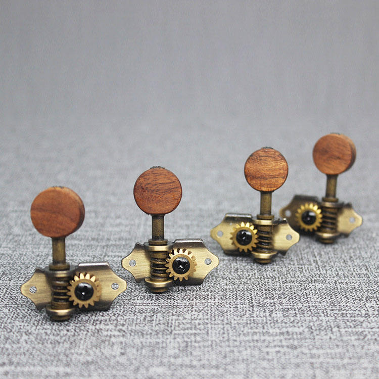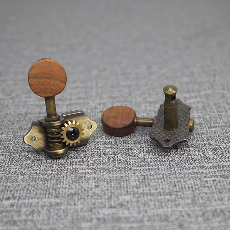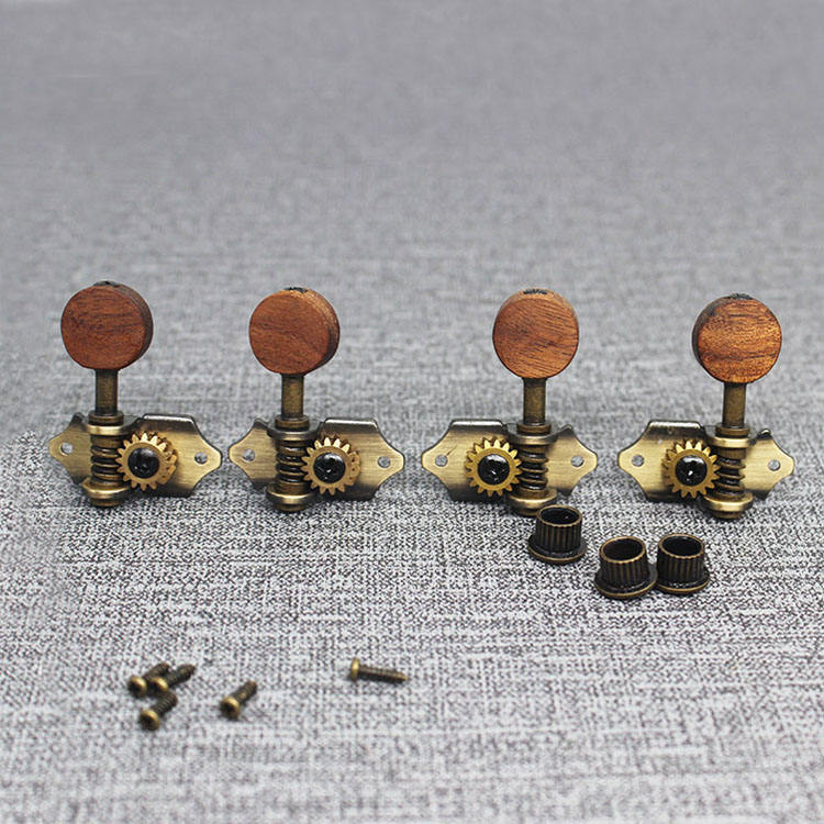Afinadores hechos a mano de bronce antiguo, 2 R2L, cabeza de máquina, ukelele con botón de madera de Acacia para ukelele, guitarra de 4 cuerdas