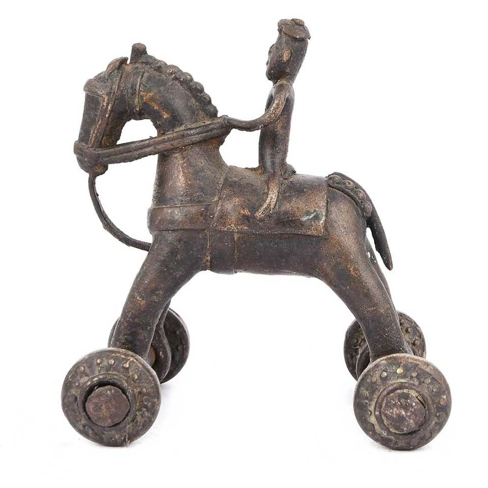 Figura de caballo de latón de oro antiguo hecho a mano con jinete, estatua de juguete, piezas de decoración, artículos de regalo