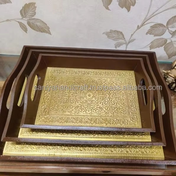 SET OF 3 HANDMADE ANTIQUE SERVING TRAY