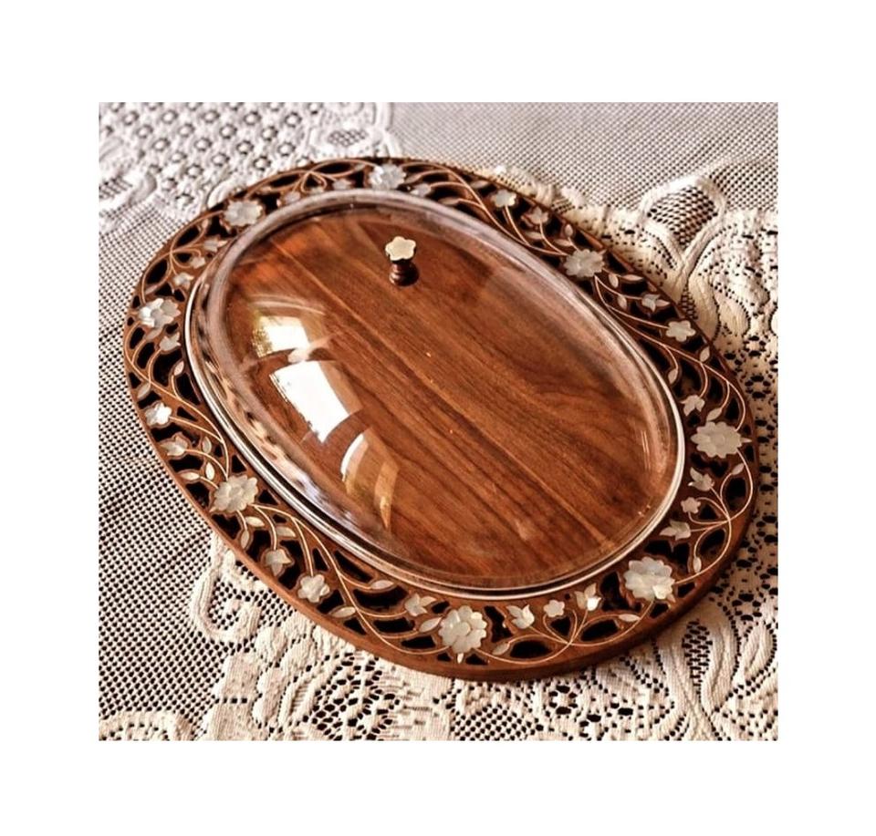 Nombre del producto:Bandeja Árabe de Madera con Trabajo de Nácar