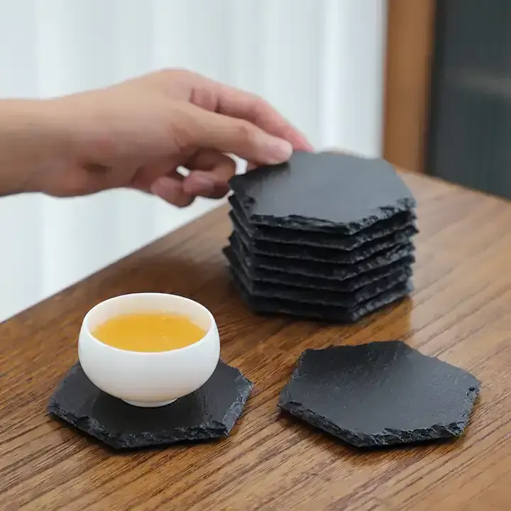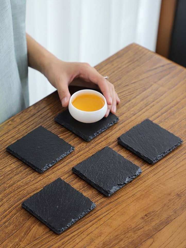 Juego de Posavasos Redondos Negros Modernos Ecológicos de Cerámica Hechos a Mano de Alta Calidad