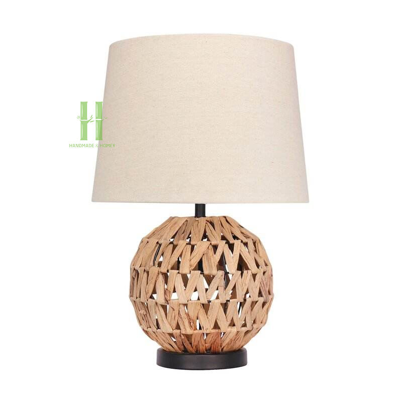 Lámparas de Mesa LED con Conectividad Tipo-C, Base de Bambú Hecha a Mano, Pantalla de Ratán, Control Táctil, AC/DC, Ecológicas, Modernas, para Dormitorio