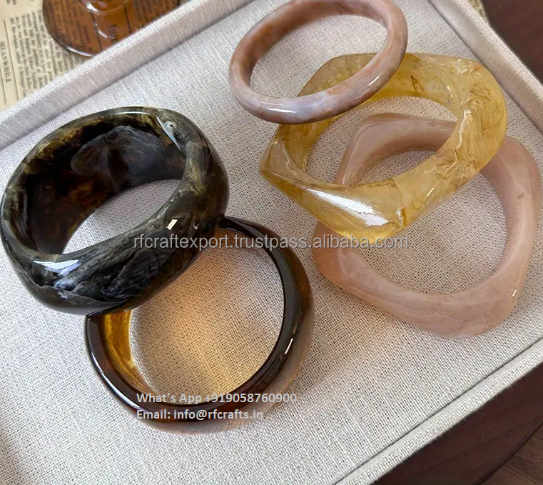 Brazalete hecho a mano, brazaletes grandes, brazalete de resina, pulsera gruesa y gruesa, juego de 5 en color personalizado para mujer