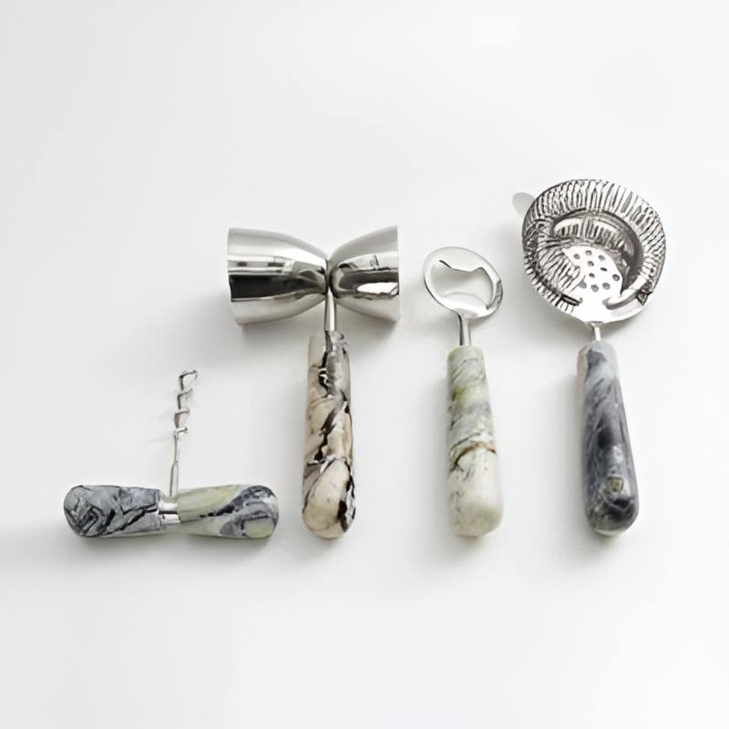 Juego de Bar Hecho a Mano con Mango de Mármol Blanco, Juego de Herramientas de Bar de Acero Inoxidable, Espátula para Vino Única y Económica, Accesorios de Bar
