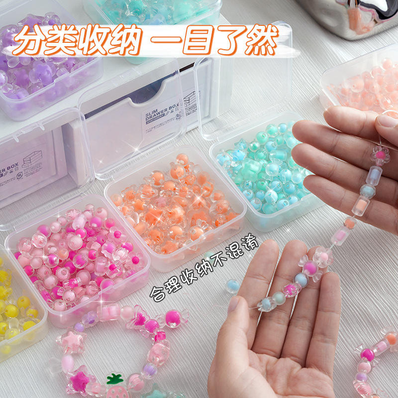 Organizador de Joyas Hecho a Mano con Cuentas de Color Sólido, Origen Zhejiang, Cubierta Transparente a Prueba de Polvo, 7.5x7.5x2.5cm, Capacidad de 1L, para Escritorio