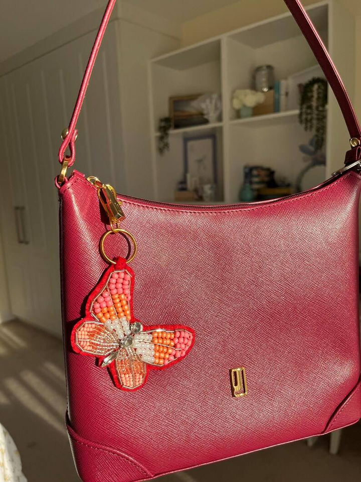 Llavero de Mariposa Hecho a Mano con Cuentas y Bordado de Lentejuelas, Accesorio Clásico Ecológico para Aficionados al Deporte