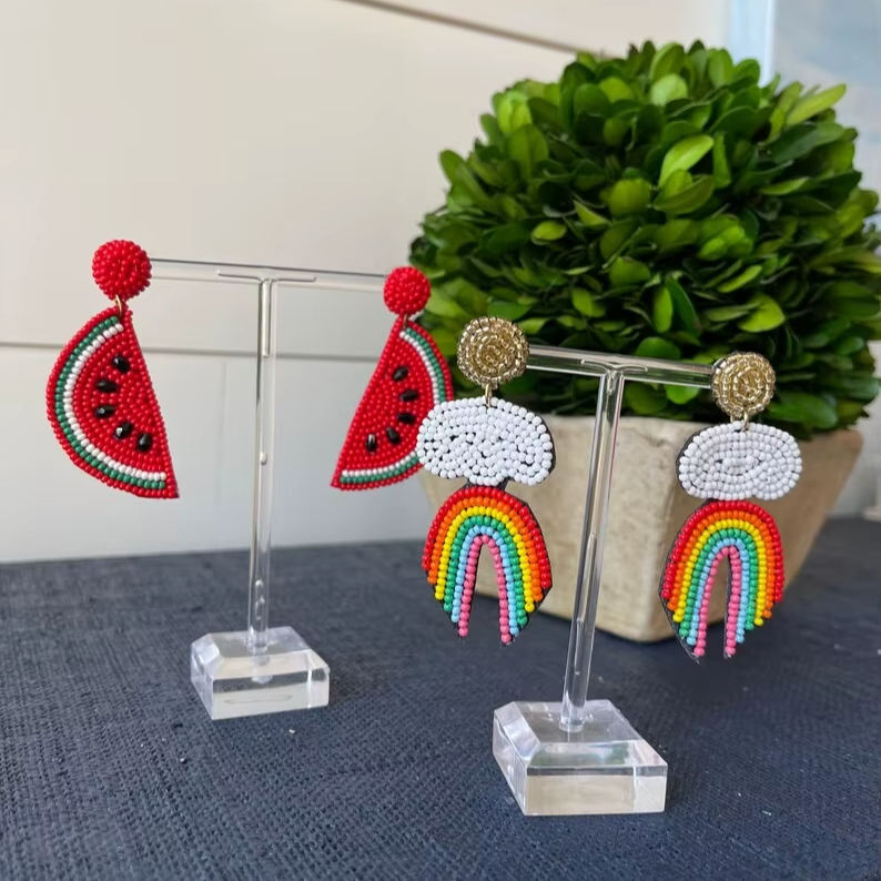 Pendientes Artesanales de Algodón con Cuentas, Ligeros, Forma Ovalada, Diseño Floral Multicolor para Uso Festivo, Estilo Diario, Regalos