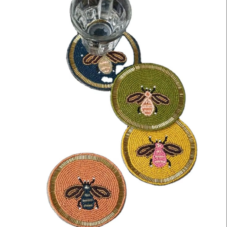 Posavasos bordado con cuentas hecho a mano con cuentas de semillas ilustraciones personalizadas con cuentas de vidrio para fines decorativos posavasos promocionales