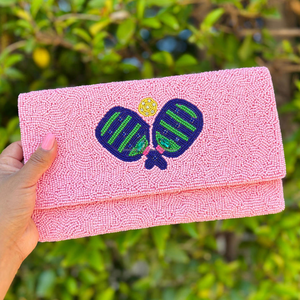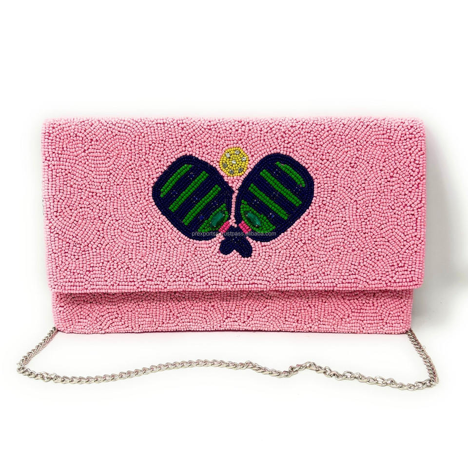 Bolso de Noche Plegable con Diseño de Raqueta de Tenis y Cuentas Hechas a Mano, Tamaño Personalizado, Cartera Deportiva para Mujer, Bolsos Casuales al por Mayor