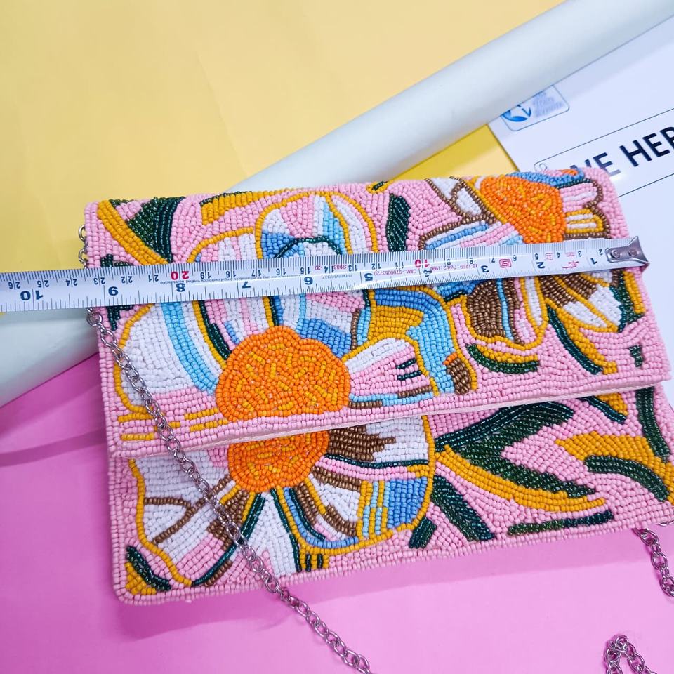 Bolsa de Almacenamiento Colgante Hecha a Mano con Cuentas, Diseño Floral Colorido, Elegante, Multiusos, con Correa de Cadena, Ecológica, Perfecta para Fiestas
