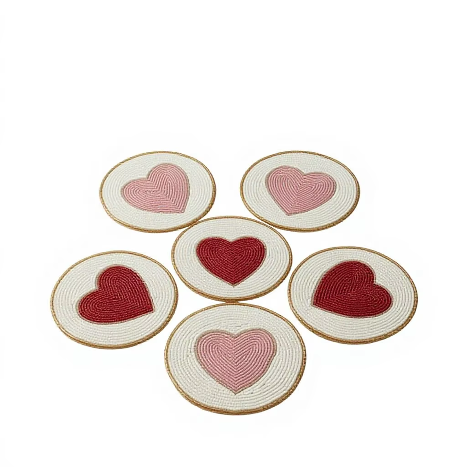 Juego de Posavasos con Cuentas Hechas a Mano, Posavasos Románticos para Bebidas, Bordado de Cuentas Redondas, Decoración de Mesa con Tema de Amor, Duraderos, HK EXPORTS