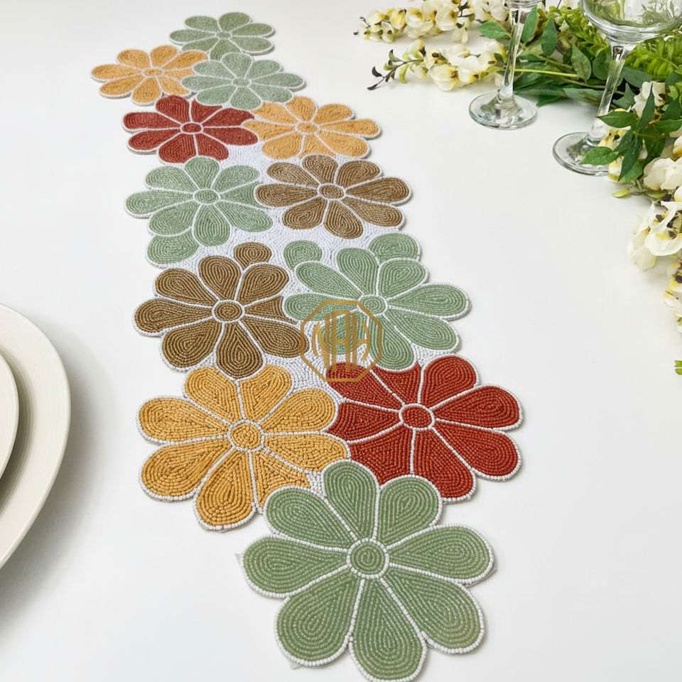 Camino de Mesa Bordado a Mano con Cuentas, Mantel Individual con Diseño Personalizado, Proveedor al por Mayor