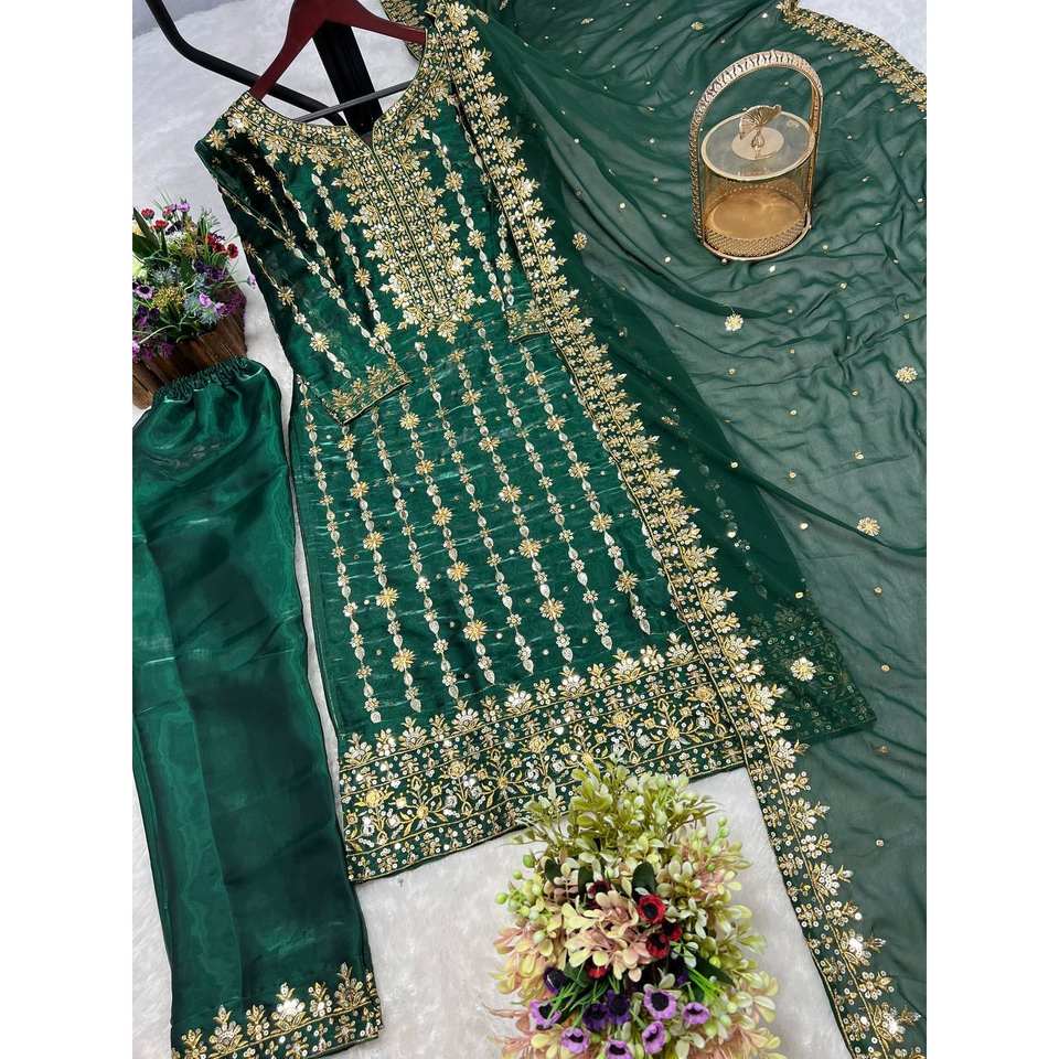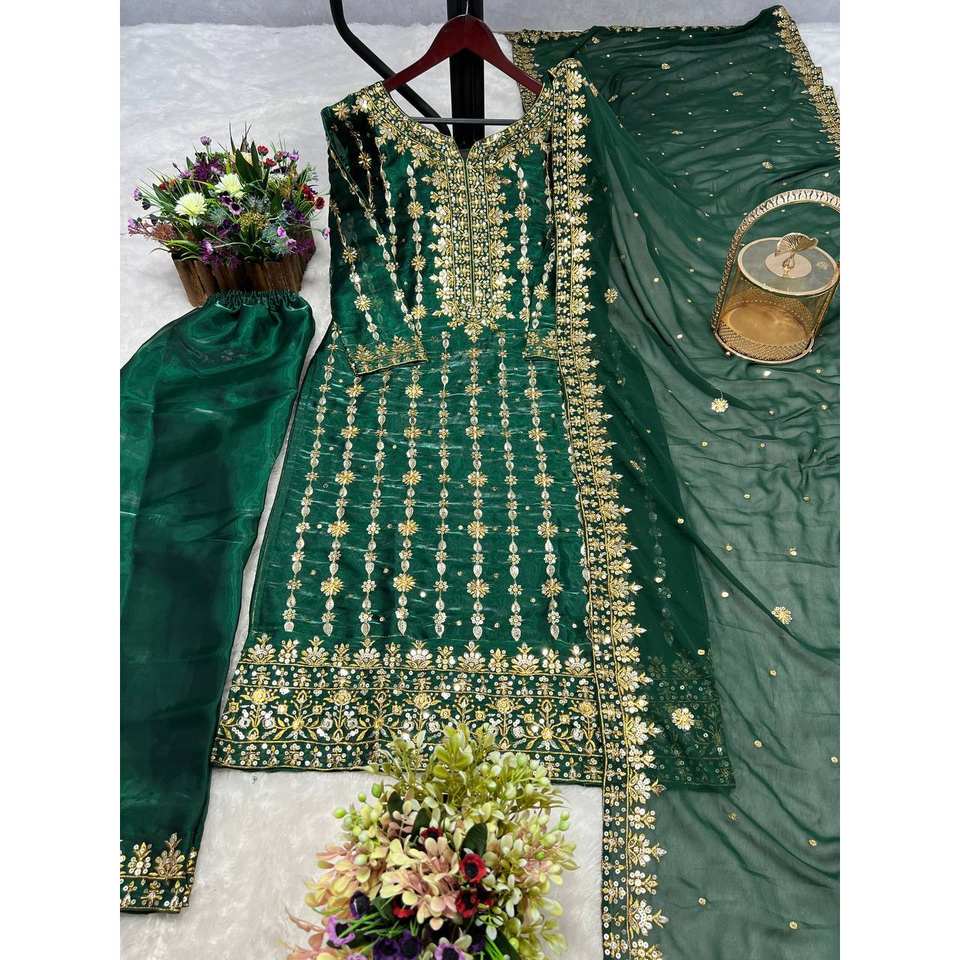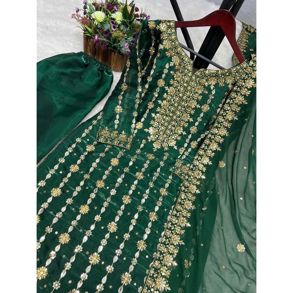 Top de Organza Bordado con Estampado Floral, Cuello Redondo, Corte en A, Hecho a Mano, con Pantalón y Dupatta, Elegante para Fiestas, Marca JD