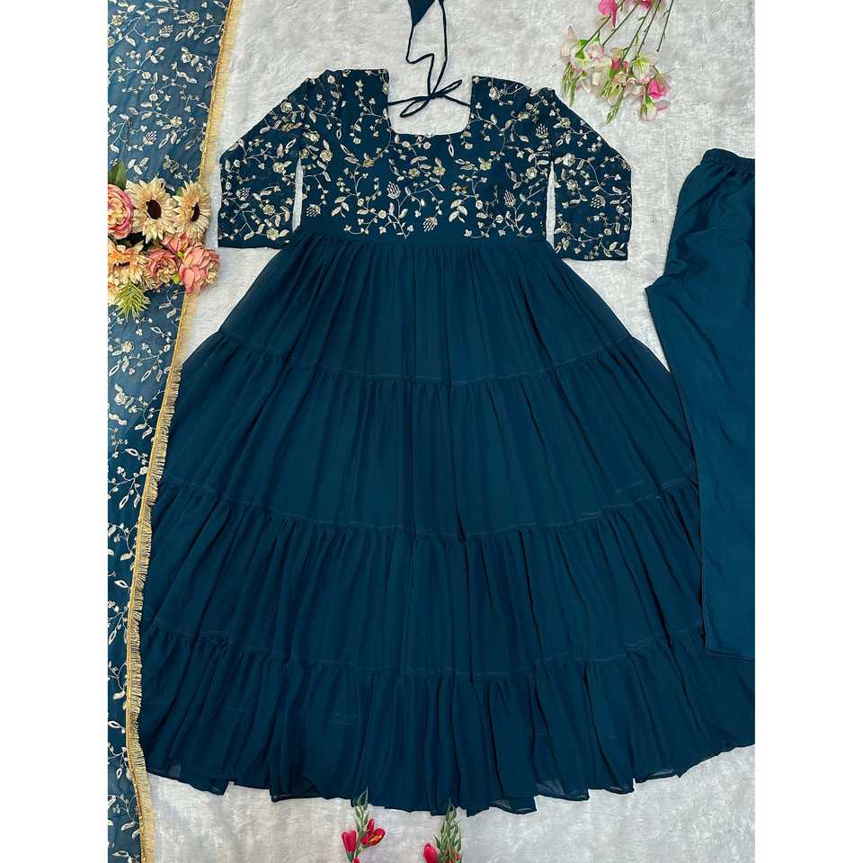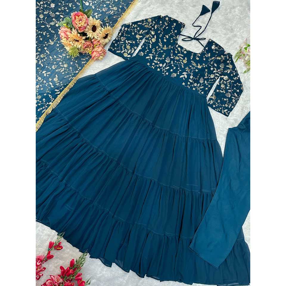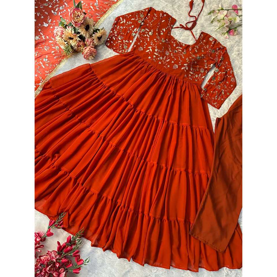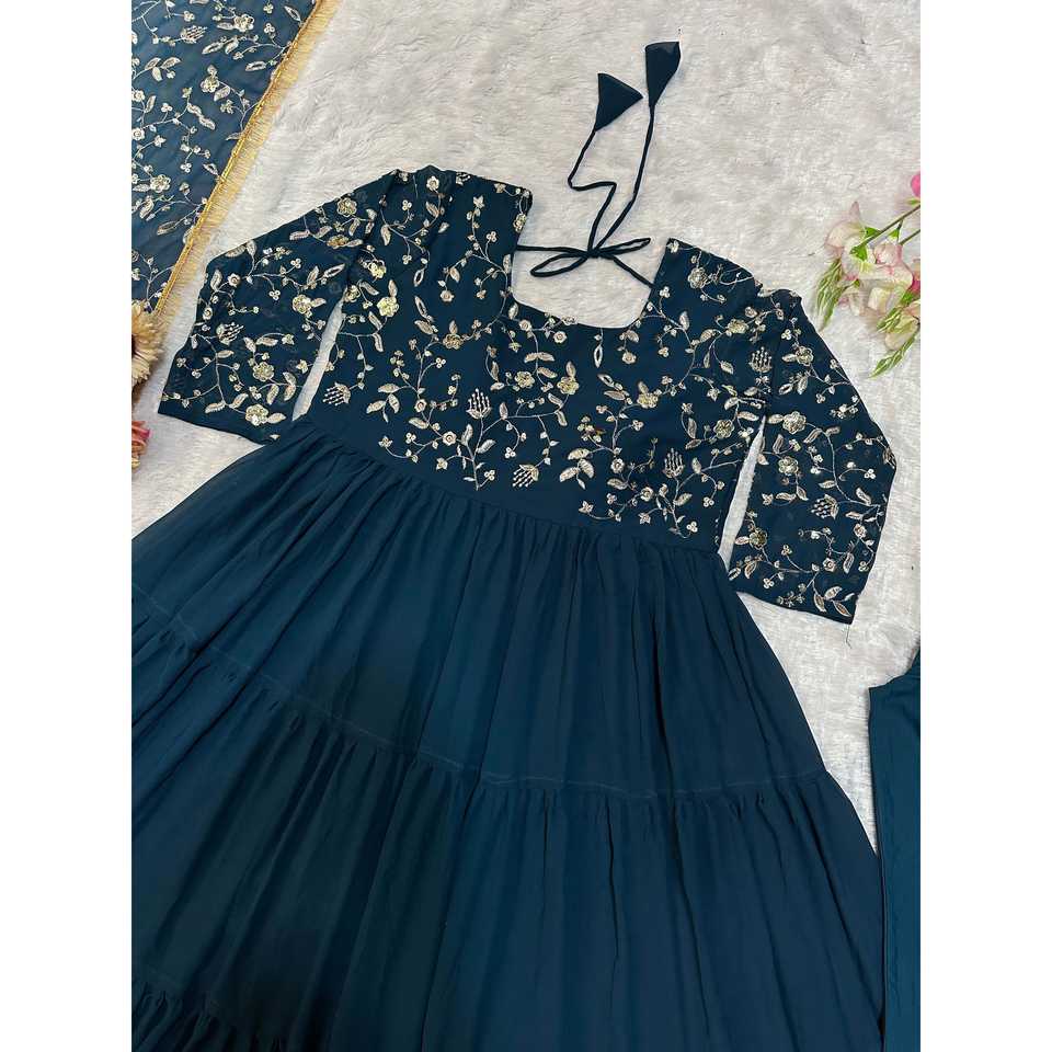 Vestido de Fiesta Hecho a Mano con Bordado, Cuello Halter, Cintura Imperio y Dupatta de Chifón - Moda Valam