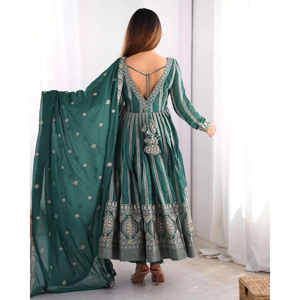 Vestido de Fiesta Elegante Hecho a Mano con Cuello en V, Lazo Cruzado, Bordado en Organza, Talla XL, Cintura Imperio, con Dupatta