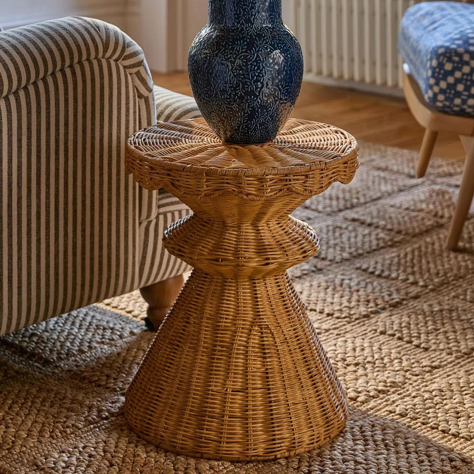 Hermosa mesa auxiliar de ratán con borde festoneado hecha a mano en Vietnam – Nuevo diseño, calidad premium, precio de mayoreo.