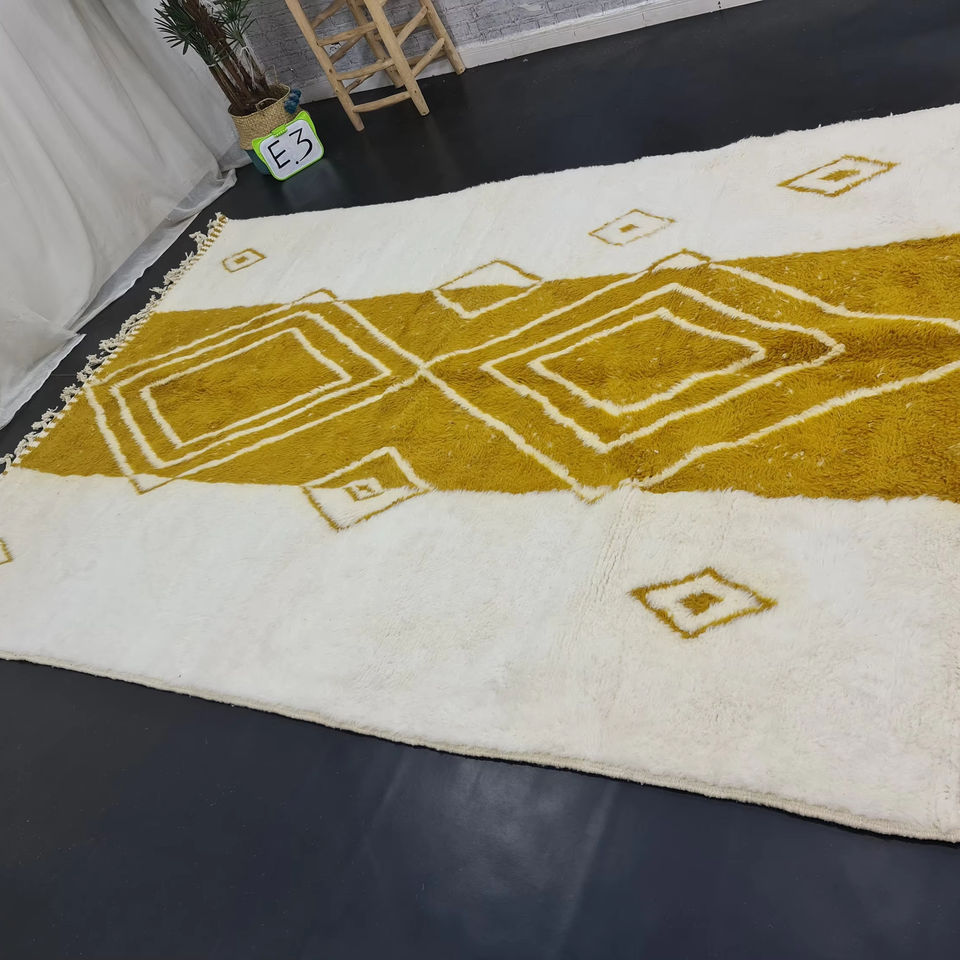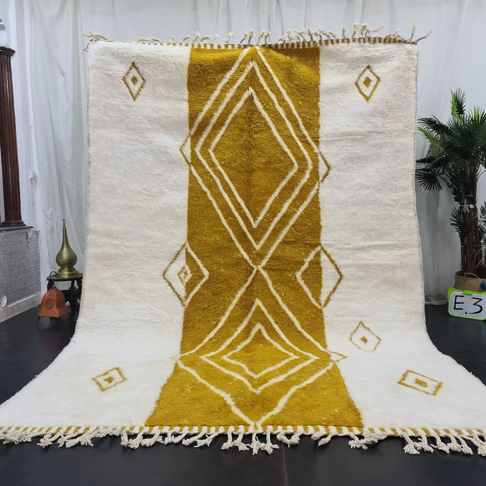 Alfombra hecha a mano Beni Ourain, alfombra geométrica Bohemia, lana mostaza, lana de oveja personalizada, Tapis Marocain, alfombra marroquí bereber